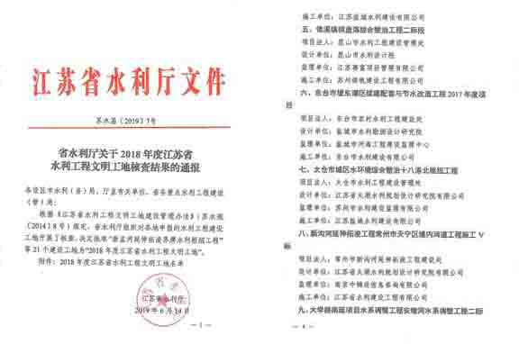 2018年度江蘇省水利工程文明工地名單