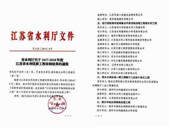 2018年度江蘇省水利優(yōu)質(zhì)工程名單