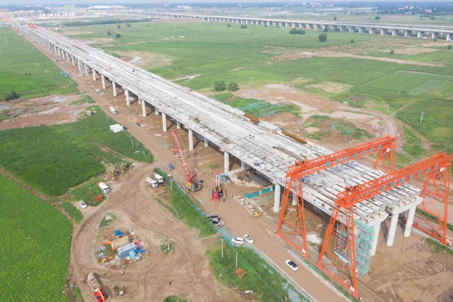 我司圓滿完成雄安站西側(cè)干路項目新蓋房特大橋536片40米箱梁預制、運輸及安裝任務!