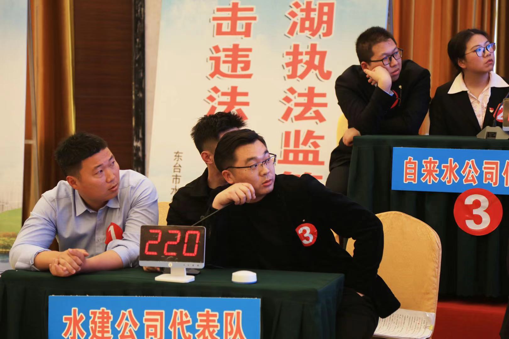 競(jìng)賽分為個(gè)人必答題、小組必答題和搶答題、風(fēng)險(xiǎn)題四個(gè)環(huán)節(jié),內(nèi)容豐富、知識(shí)覆蓋面廣,重點(diǎn)考察掌握黨史、水法律法規(guī)等基本知識(shí)點(diǎn)的熟練程度。比賽現(xiàn)場(chǎng)中,氣氛既緊張又熱烈。我公司代表隊(duì)3名參賽隊(duì)員精神飽滿、斗志昂揚(yáng)、信心十足,面對(duì)主持人提出的競(jìng)賽題,三位同志團(tuán)結(jié)協(xié)作,冷靜作答;在搶答題、風(fēng)險(xiǎn)題環(huán)節(jié)中發(fā)揚(yáng)百折不撓、不畏強(qiáng)手,奮勇爭(zhēng)先,永不言棄的精神,充分展現(xiàn)了東臺(tái)水建人勇于拼搏不言敗的精神面貌和團(tuán)隊(duì)協(xié)作優(yōu)良傳統(tǒng)!