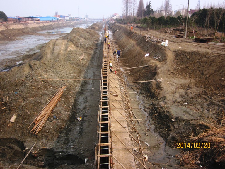 東臺(tái)市方塘河整治工程分為方塘河北支~方塘河閘、丁堡河~方塘河北支兩個(gè)項(xiàng)目,其中方塘河北支~方塘河閘整治位于江蘇省東臺(tái)市新街鎮(zhèn)、弶港鎮(zhèn)境內(nèi),全長(zhǎng)10.0Km的河道疏深、拓浚及方塘河閘近閘段河道兩岸砼護(hù)坡防護(hù);丁堡河~方塘河北支整治位于江蘇省東臺(tái)市唐洋鎮(zhèn)、新街鎮(zhèn)境內(nèi),全長(zhǎng)9.7Km的河道疏深、拓浚,對(duì)新街鎮(zhèn)新西橋~新陳河段河道兩岸進(jìn)行砼駁岸防護(hù),對(duì)新陳河~九蓮寺段段河道兩岸進(jìn)行砼、草皮護(hù)坡防護(hù),拆建中苴大橋,拆除方塘河新街腰閘。完成主要工程量有:土方挖填約334.3萬方,砼1.05萬方,鋼筋制安394.5噸。
